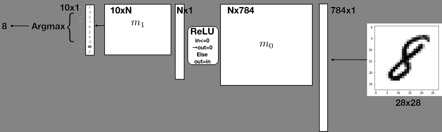 Recall the neural net that we're trying to create. In this task, you will use functions from the previous tasks in order to complete the classification function, located in src/classify.s.